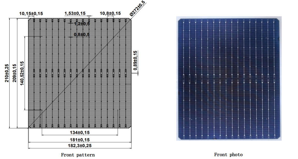 Front surface | Busbar :16 Finger:236 Interval: 10.8±0.15mm Front pad width:1.2/0.8±0.15mm |