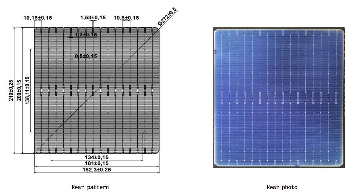 Rear surface | Busbar:16 Finger:228 Interval:10.8±0.15mm Rear pad width:1.2/0.8±0. 15mm |